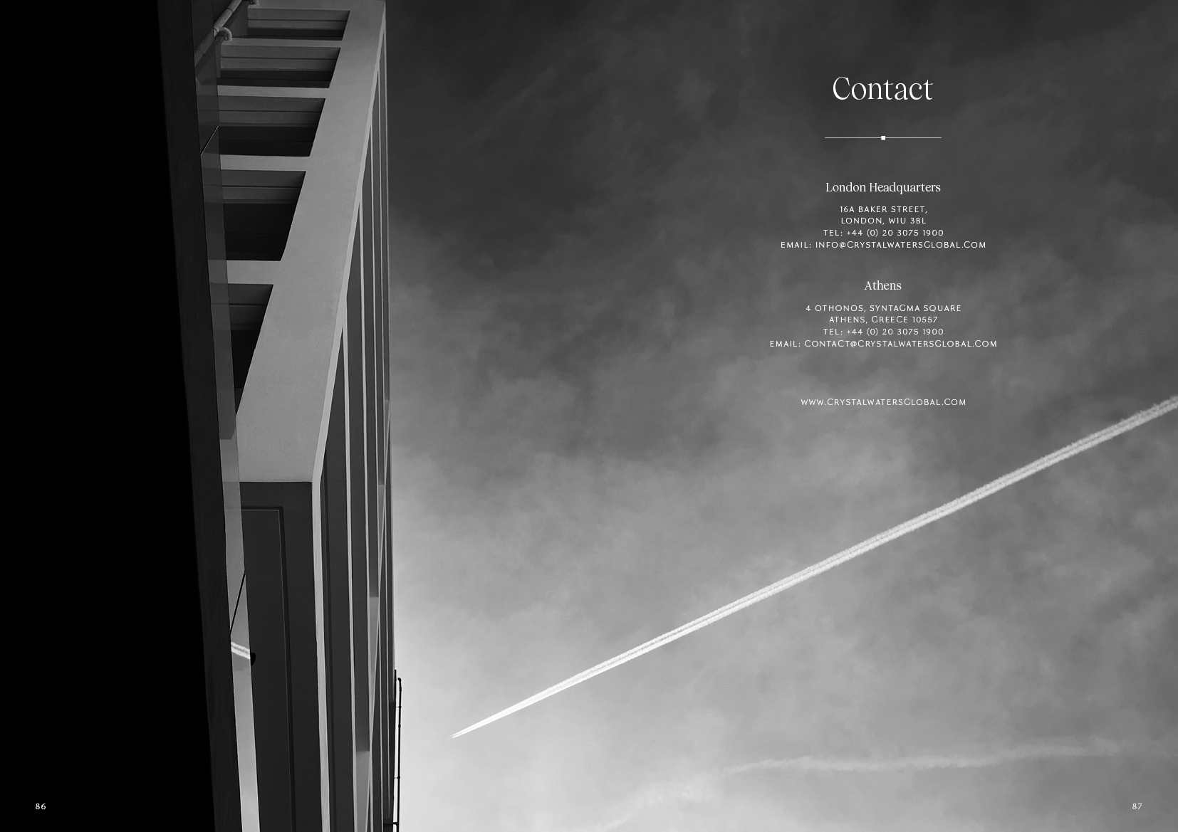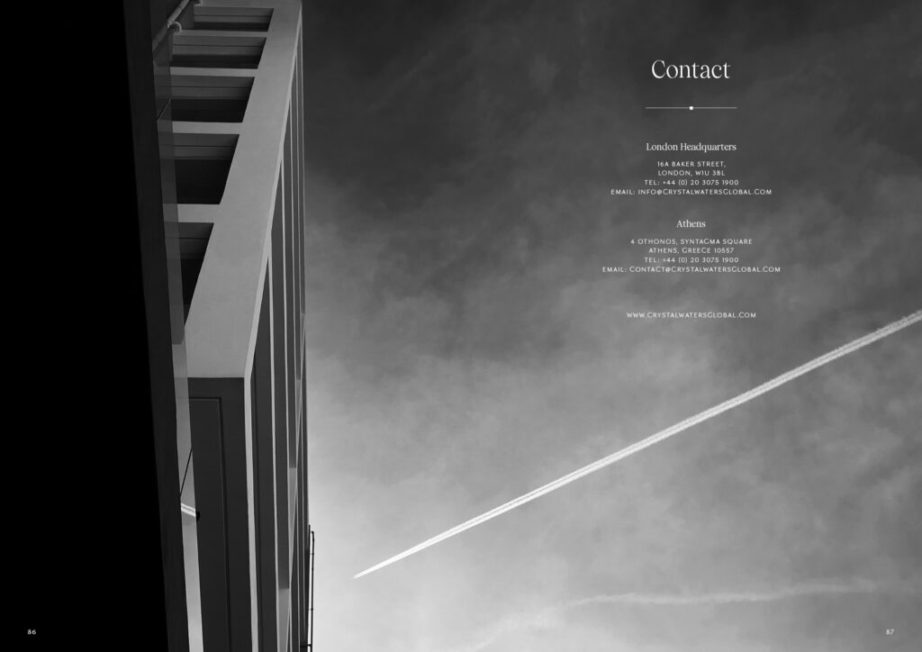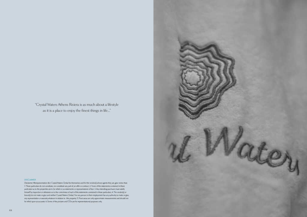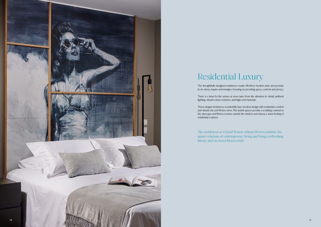 Σχεδιασμός και δημιουργία Μπροσούρας για το κτίριο μακράς μίσθωσης "Athens Riviera" στο Φάληρο, της εταιρίας Crystal Waters που δραστηριοποιείται στο τομέα του Real Estate & Hospitality. 88 Σελίδες.