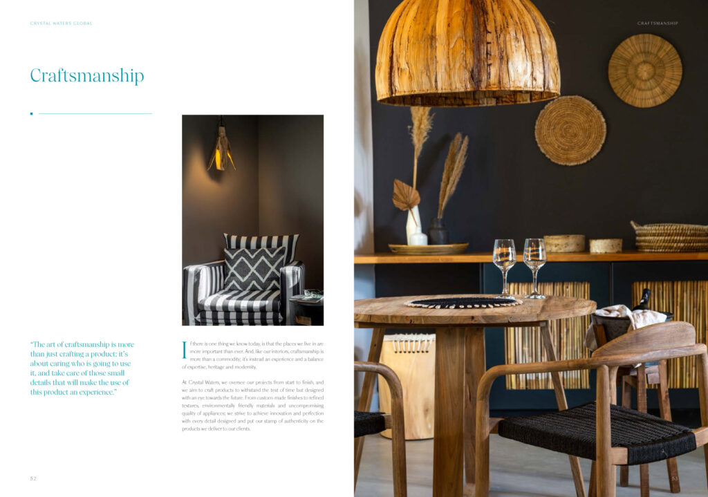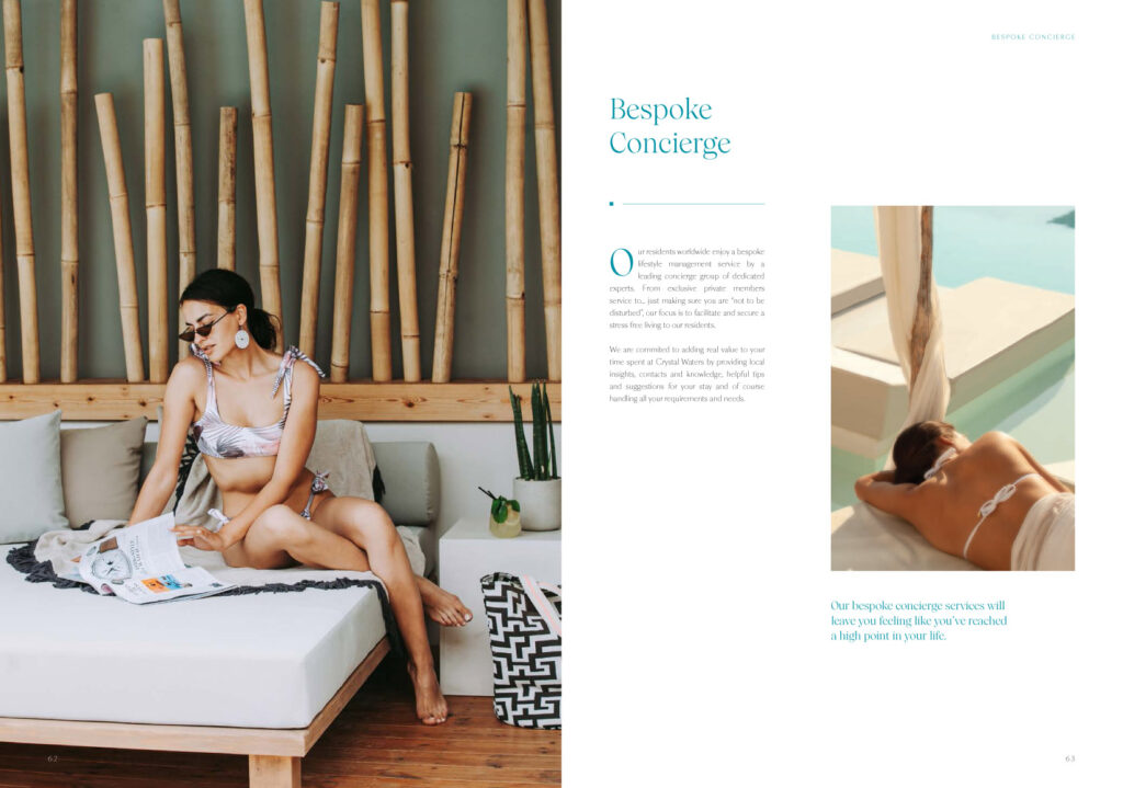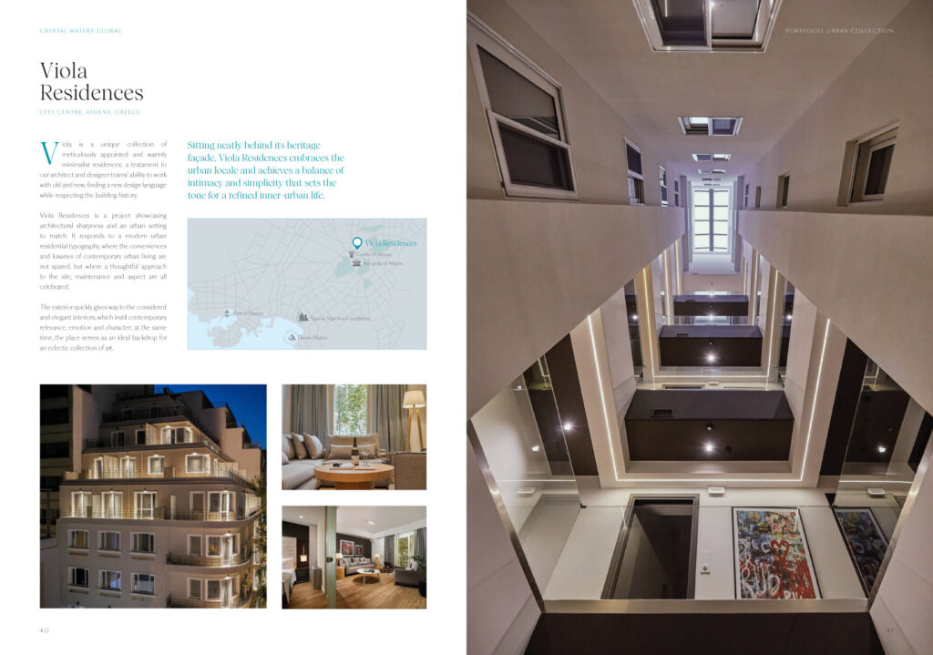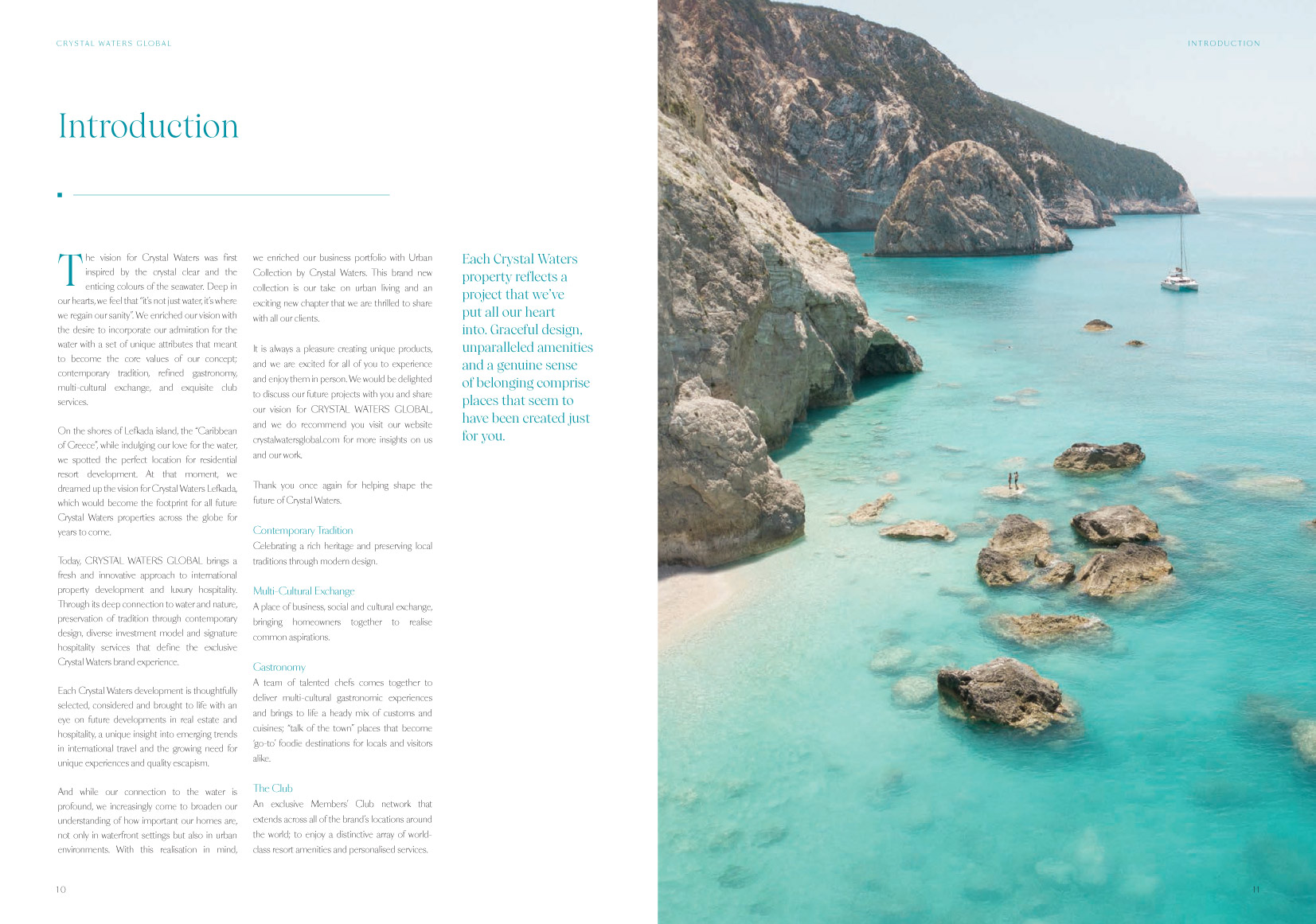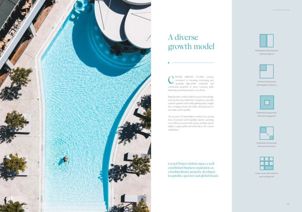 Σχεδιασμός Μπροσούρας για την εταιρία Crystal Waters που δραστηριοποιείται στο τομέα του Real Estate & Hospitality. 80 Σελίδες.