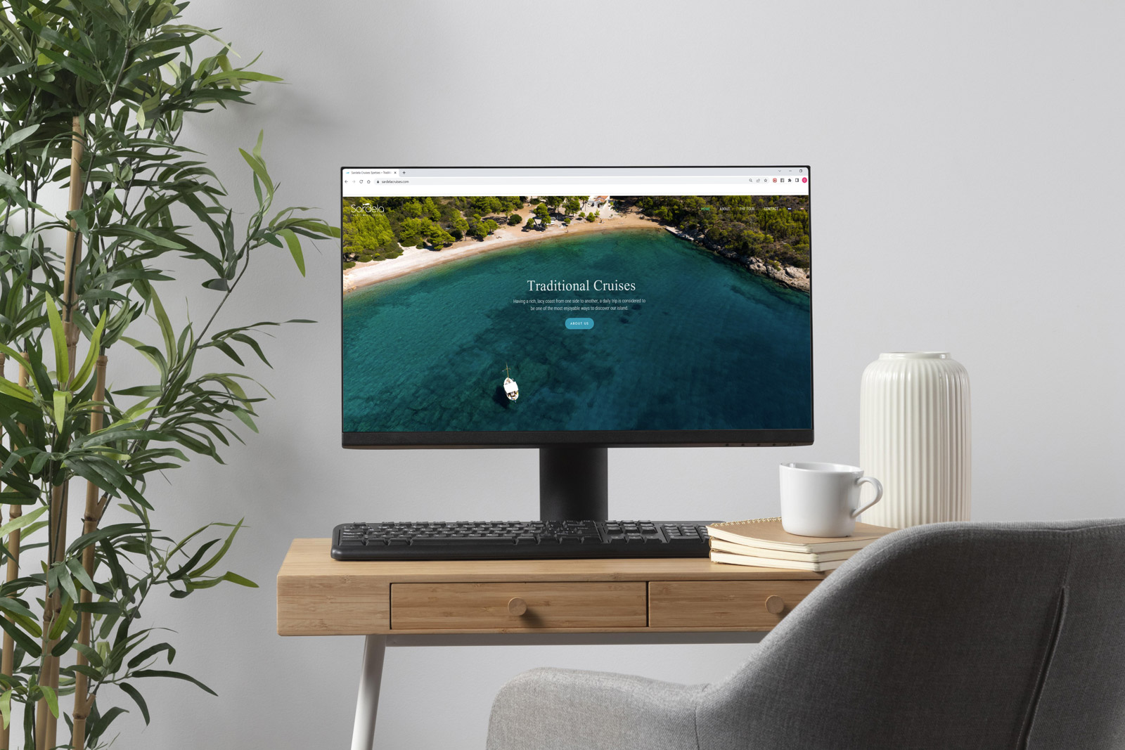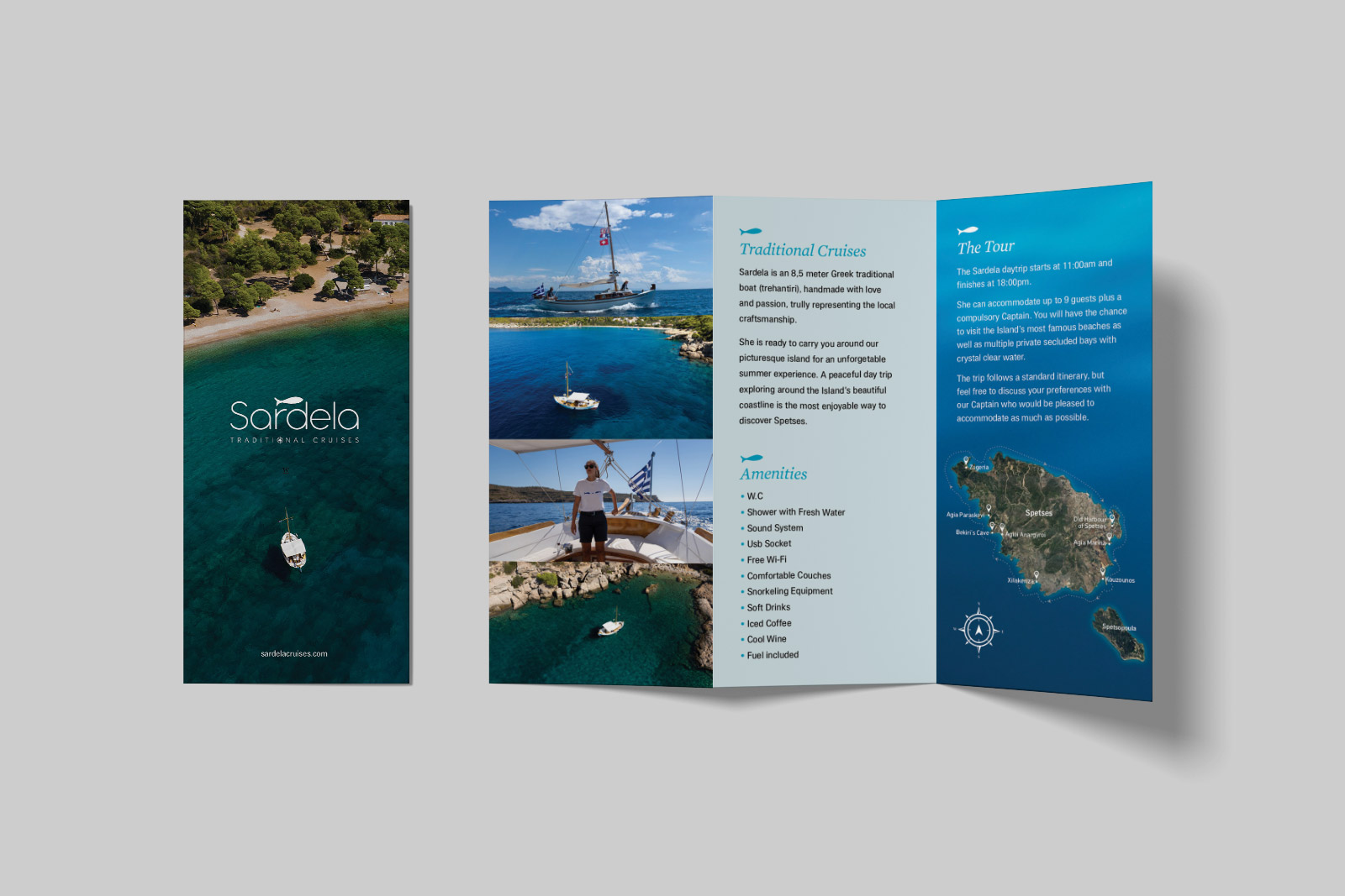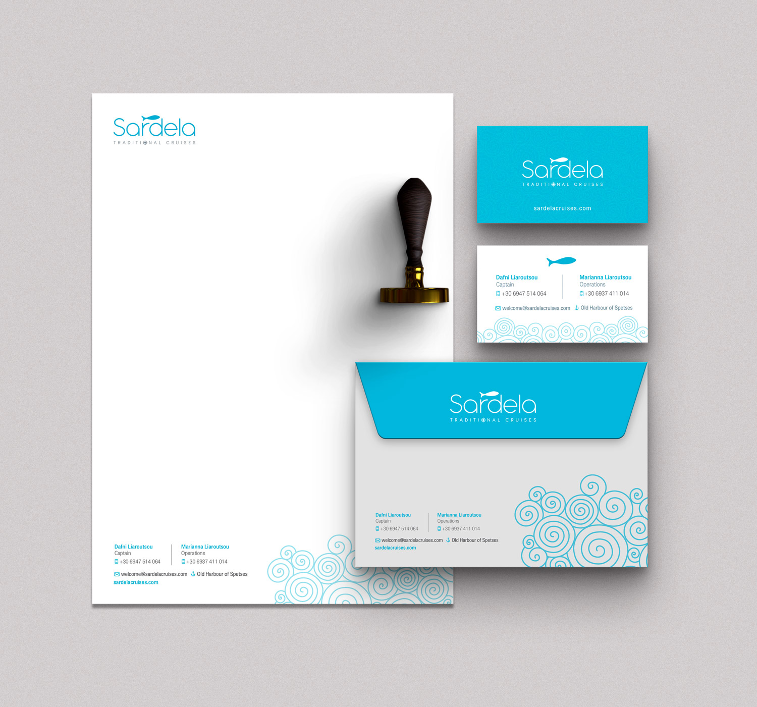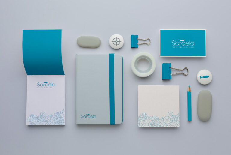 Branding, σχεδιασμός λογοτύπου, εταιρικής ταυτότητας, εντύπων και website για την Sardela Traditional Cruises στiς Σπέτσες.
