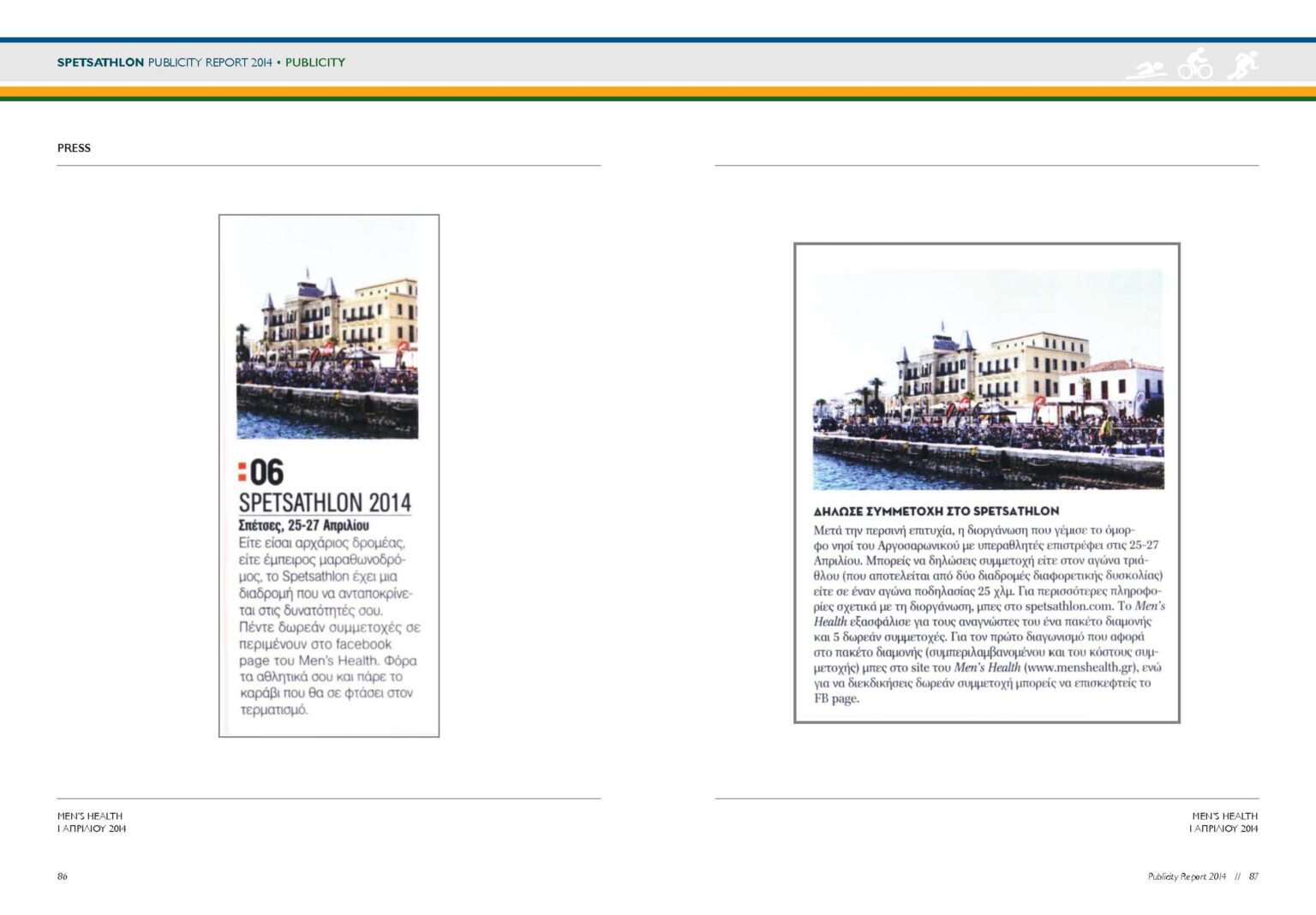 Σχεδιασμός και σελιδοποίηση του Publicity Report για τη διοργάνωση του Spetsathlon που γίνεται κάθε χρόνο στις Σπέτσες.