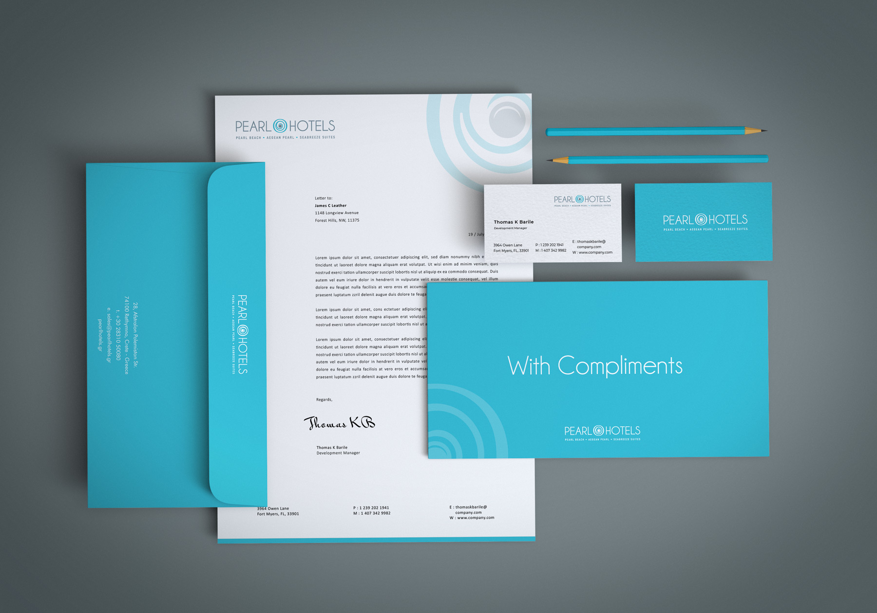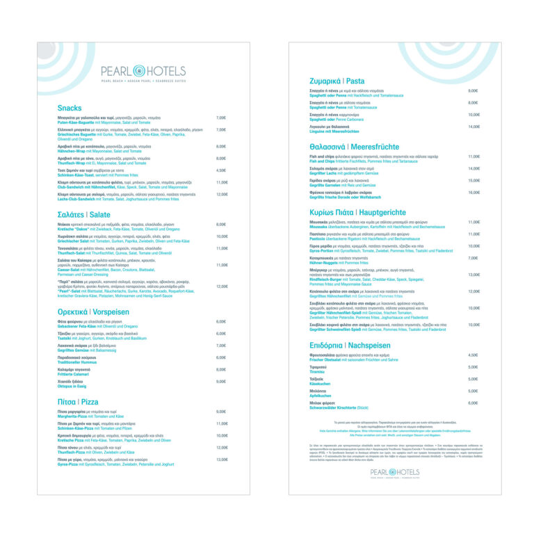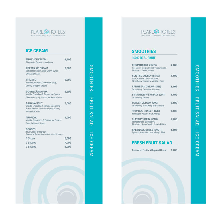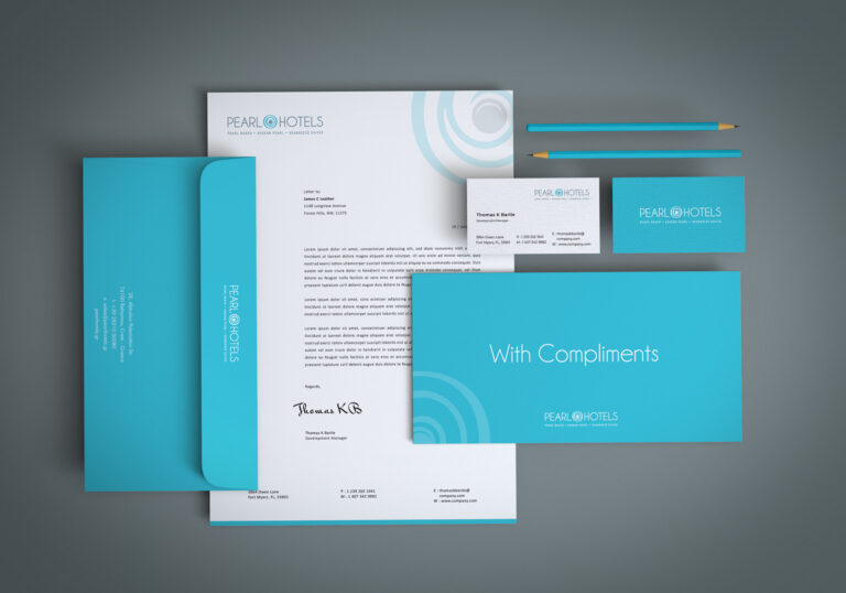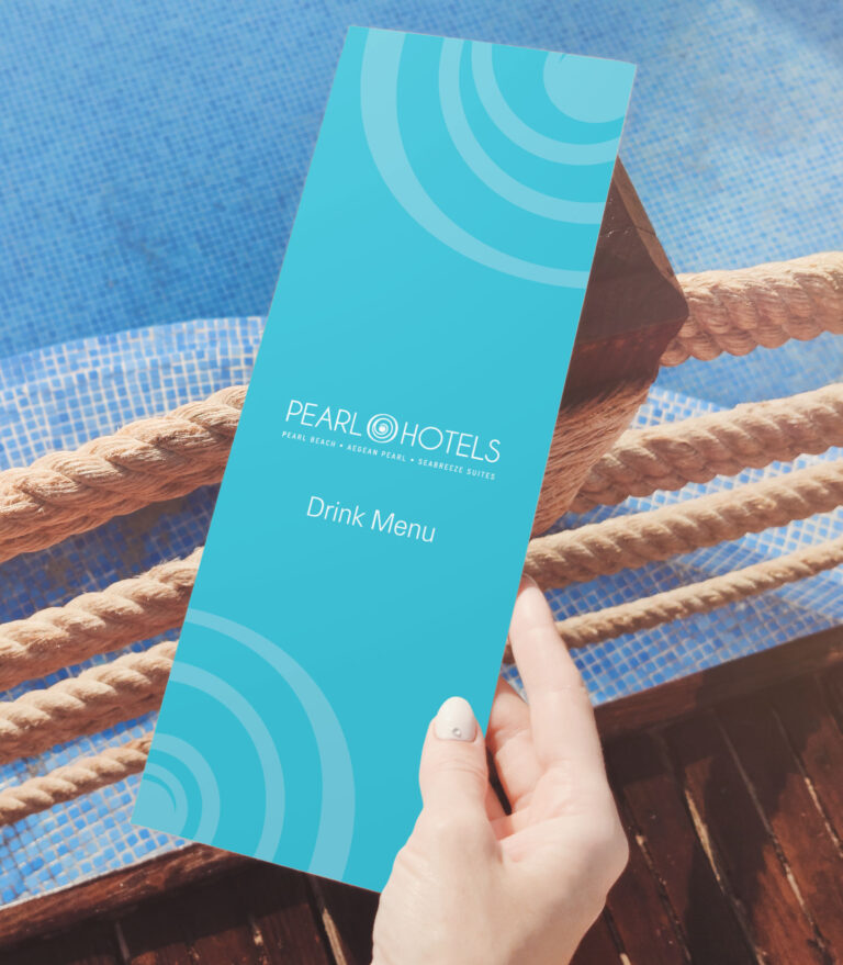 Re-Branding, σχεδιασμός λογοτύπου, εταιρικής ταυτότητας και εντύπων για τα ξενοδοχεία Pearl Hotels στο Ρέθυμνο Κρήτης.