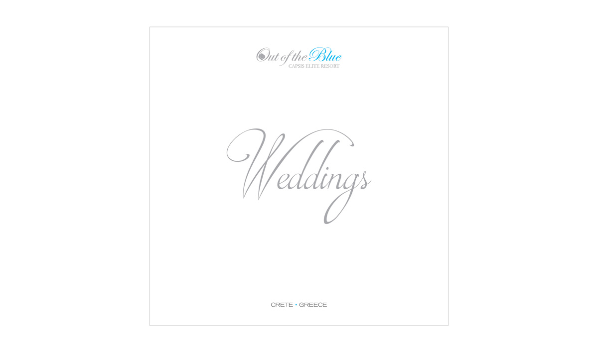 Βραβευμένη Μπροσούρα γάμων και εκδηλώσων για το ξενοδοχείο Out of the Blue Resort στην Αγ. Πελαγία του Ηράκλειο Κρήτης. 40 σελιδες. Εξώφυλλο: Ασημοτυπία, Ανάγλυφο Γκοφρέ. Εσωτερικό: 6 χρώματα (+ 2 Μεταλικά). Το έντυπο αυτό βραβέυτηκε στα PRINTING AWARDS 2020 με GOLD AWARD μαζί με το τυπογραφείο Μυτιλιναίος Εκτυπώσεις στην κατηγορία Brochure Printer of the year.