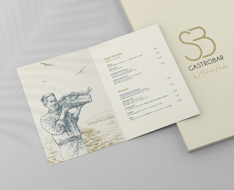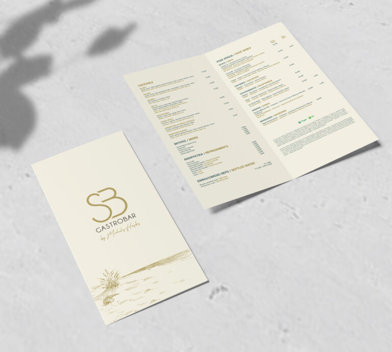 Branding, σχεδιασμός λογοτύπου, εταιρικής ταυτότητας και μενού για τo εστιατόριο SeaBreeze Gasrorbar, του Μιχάλη Χάσικου στo Ρέθυμνο.